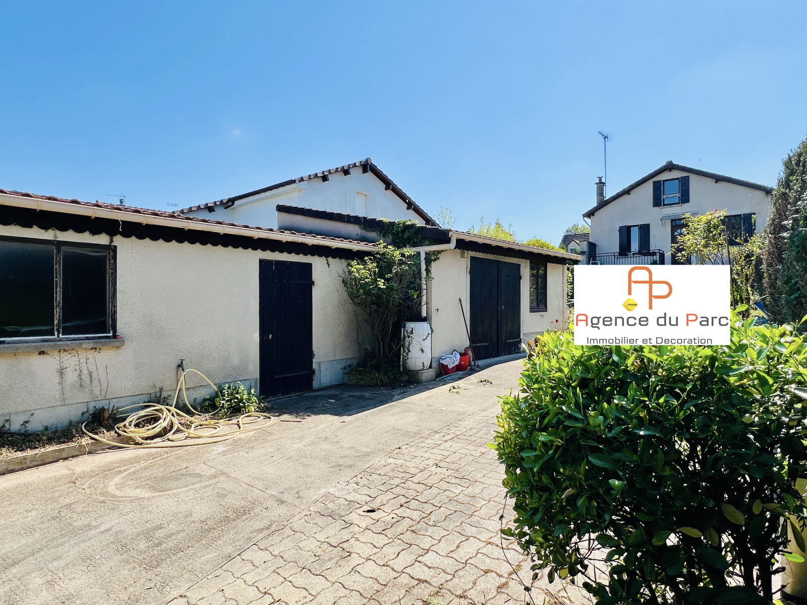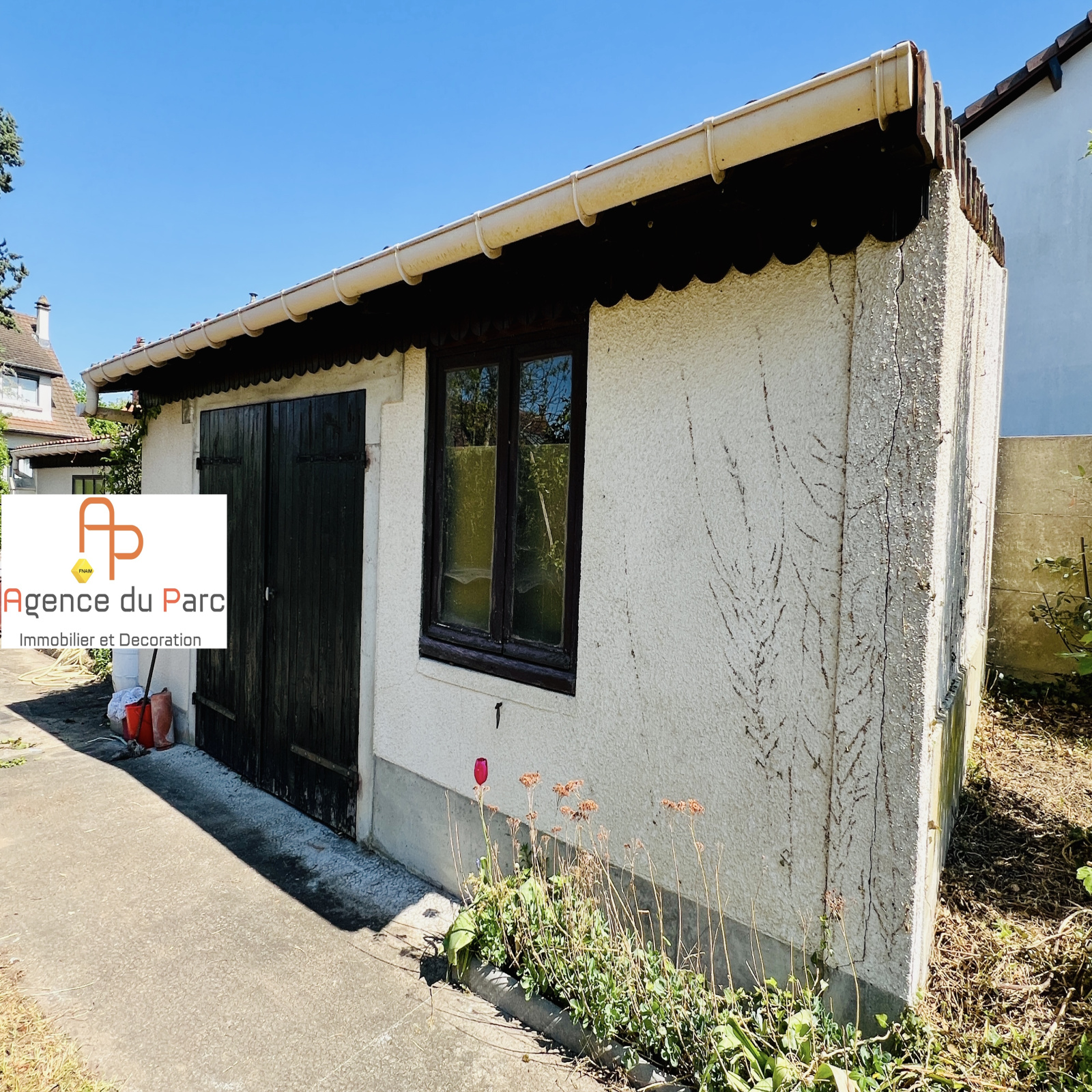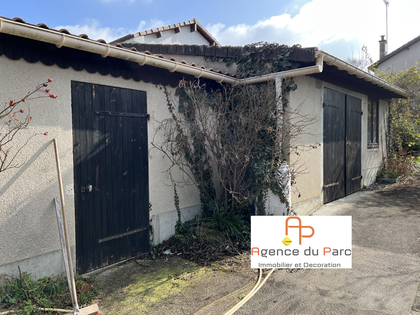 Dépendance comprenant un bel atelier de 24 m2 et un garage double avec eau et électicité, de plus possibilité de rentrer 2 à 3 véhicules sur le devant de la maison.