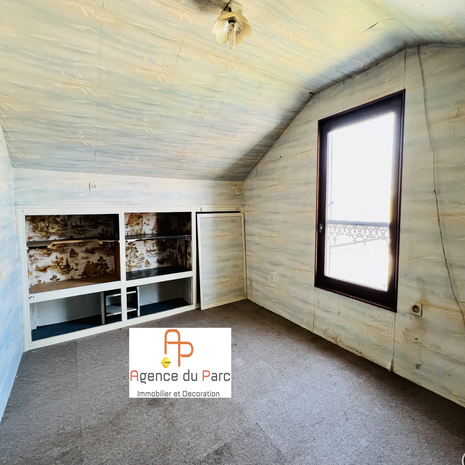 A l'étage, sous combles 2 grandes chambres menssardées avec placards en sous-pente.